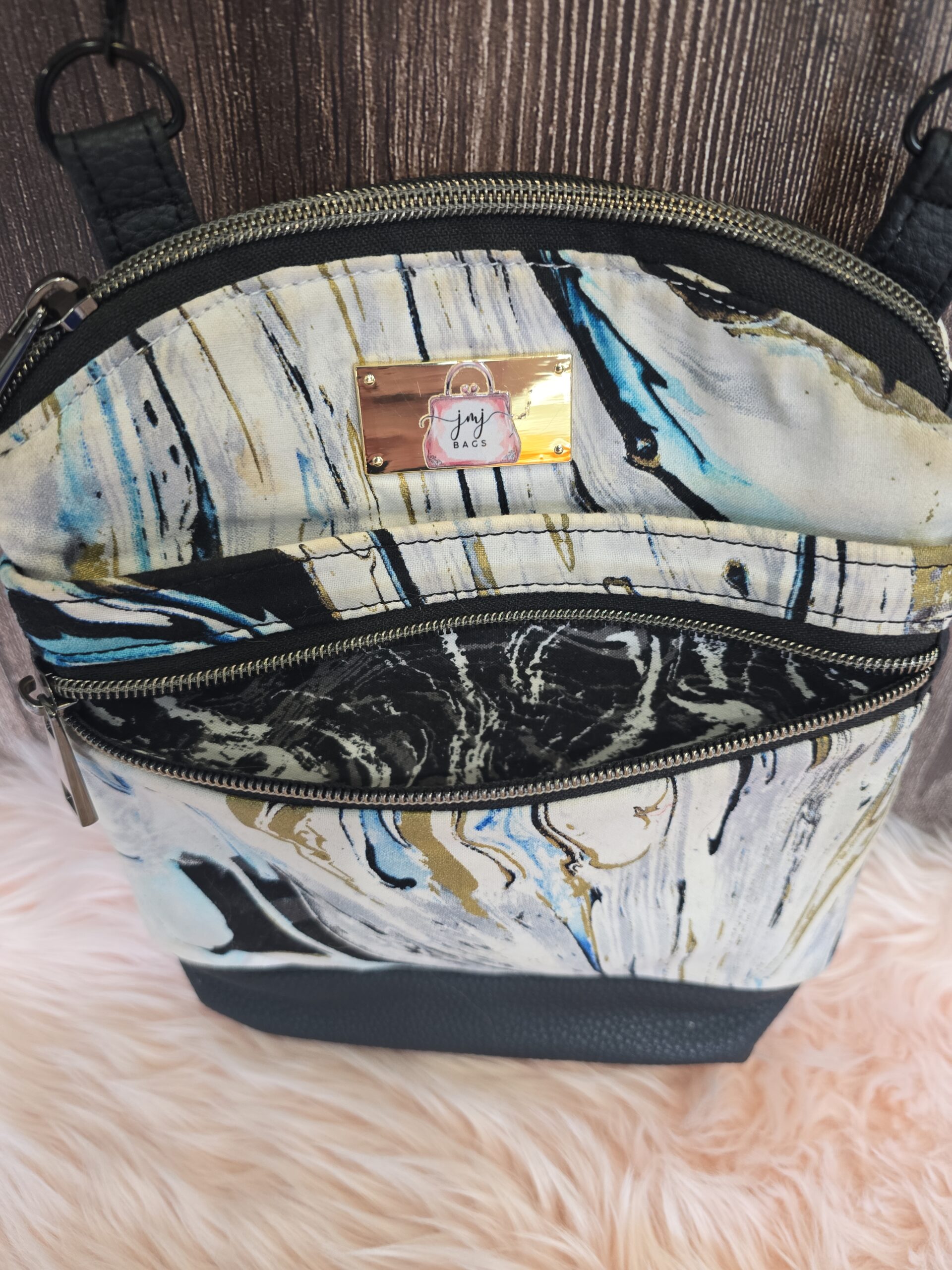 The main zippered compartment is roomy, providing 2 card pockets, a slip pocket and a zippered pocket. The front of the bag has a zippered pocket, a slip pocket and a phone pocket so you are sure to be able to take all your essentials and stay organised while you are at it!